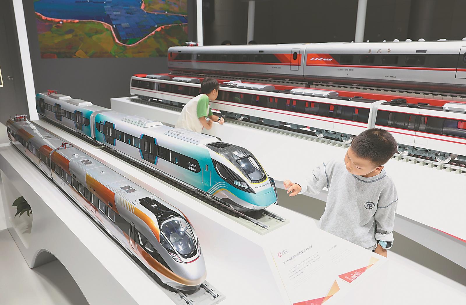 9月20日,合肥滨湖国际会展中心,小朋友在参观中国中车展出的各类动车组模型。本报记者 李季 摄